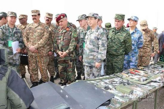 阿中巴塔四国军队领导人观摩反恐装备展示。