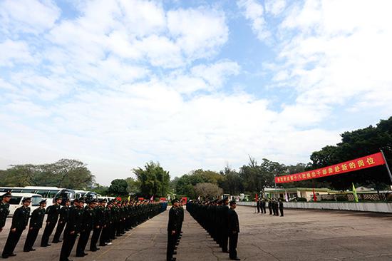 9时30分,驻香港部队在香港新田军营举行仪式,为奔赴新工作岗位的战友们送行。驻香港部队司令员谭本宏、政委岳世鑫对轮换出港的军官为驻军部队做出的贡献表示感谢,并希望他们继续发扬驻军部队的优良传统和作风,在新的工作岗位,再接再厉,再创佳绩。