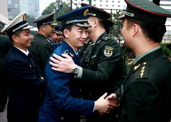 这批军官大多是3年前从全军选调到驻香港部队工作的,在港期间,他们忠实履行职责,认真贯彻“一国两制”方针,威武文明,爱港亲民,出色完成了“香江卫士”联合军演、“和平友谊-2016”中马联合军演、海空联合巡逻、军营开放等各项任务,为香港的繁荣稳定做出了重要贡献,受到了香港同胞和社会各界的高度赞誉。他们离开香港后,将分配到全军相关单位,继续为国防和军队建设履行神圣职责。