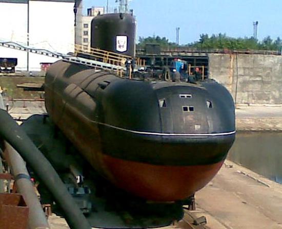 建造中的“萨洛夫”级试验潜艇,可见其前部出现了一个“大鼻子”,可能用于容纳超级鱼雷发射管