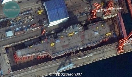 10月底,国防部新闻发言人吴谦表示,我国首艘国产航母已完成设计工作,主船体已在坞内合拢成型,正在开展设备安装和舾装等建造工作。
