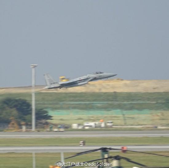 原本预定在航空祭上进行飞行表演的F-15J紧急升空,1小时内起飞5波,共10架