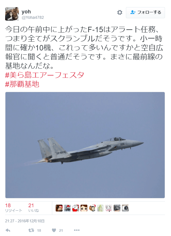 还有的表示,那霸基地的自卫队战斗机一般是2架待机5分钟起飞,然后再2架待机15分钟起飞,这两组人员之间互相切换,在24小时内进行值班。因此像这次紧急起飞10架,肯定是取消了飞行员的休息……评论是:“这个周末真惨。”