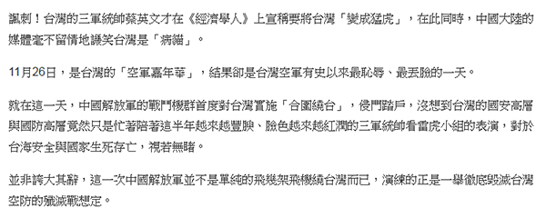 又提到台湾空军了……25日那次,正忙着“空军节”飞行表演的台军没有派出飞机“伴飞”,引起台湾舆论哗然,甚至大家熟悉的“保洁哥”在他的谈话节目中大呼:“这是‘中华民国’空军有史以来最耻辱的一天!”