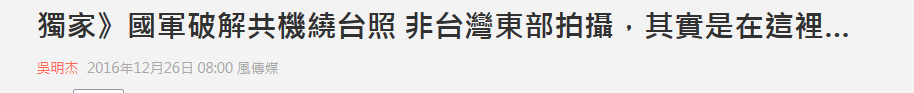 台湾风传媒12月26日发布独家报道,宣称台军破解“共机绕台”机密,12月10日解放军远海训练飞行发布的照片不是从台湾东侧空中拍摄,而是台湾海峡中线以西拍摄的。然而,观察者网军事评论员发现,这似乎是一个“以谣言倒逼真相”的奇怪故事。