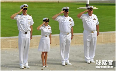从左至右分别是CG-63“考彭斯”号的舰长,轮机长,大副,军士长