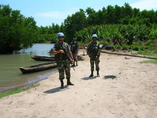 中国提供的军事援助将用于支持乌拉圭军队执行联合国维和行动,图为在非洲的乌拉圭维和军人