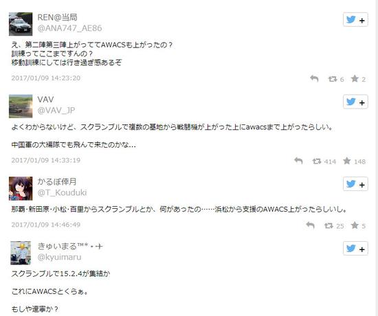 14点23分之后日机从那霸,新田园,小松,百里等基地连续起飞,日本网友猜测是否解放军空军大编队或者辽宁舰编队出现。