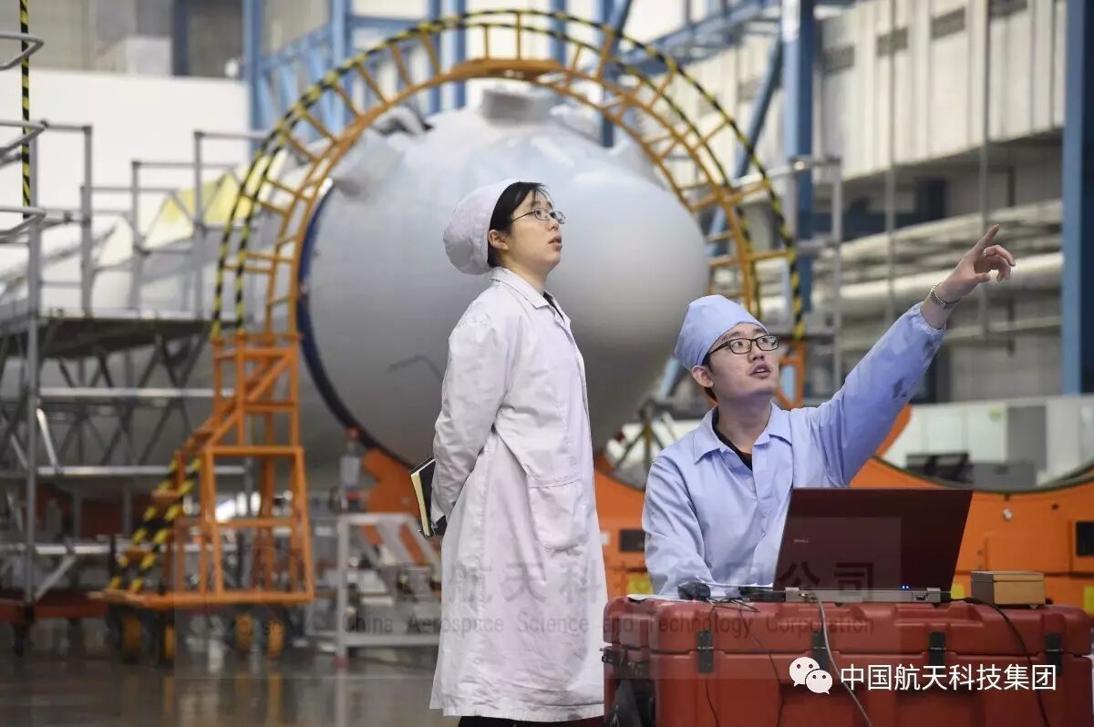 在总装厂房的另一侧,国家技能大师、天津火箭公司总装车间副主任崔蕴和他的徒弟们正围着12多米长的长征七号火箭整流罩忙活着。