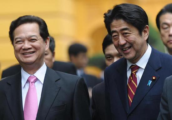 当地时间1月16日,越南河内,日本首相安倍晋三偕夫人抵达越南,开始其上任以后的首次出访。在与越南总理阮晋勇的会谈中,安倍公开呼吁越南与日本联起手来,共同应对中国在本地区“日益活跃的行动”。