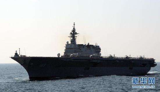 资料图:日本海上自卫队“出云”号直升机驱逐舰接受检阅。