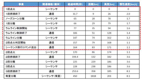 拜探空火箭的底子所赐,SS-520-4起飞后迅猛加速,31.7秒时一级火箭就已经燃烧完毕,火箭达到26千米高度,速度每秒2千米。这时,一般的运载火箭会进行一二级分离,二级点火继续飞行,以获得更大的速度增量。但是SS-520-4却要带着成为死重的一级继续无动力飞行34.3秒,白白浪费宝贵的速度。
