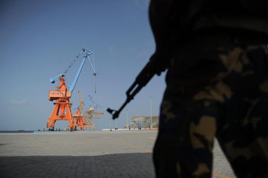 资料图:巴基斯坦安全人员保卫瓜达尔港。新华社