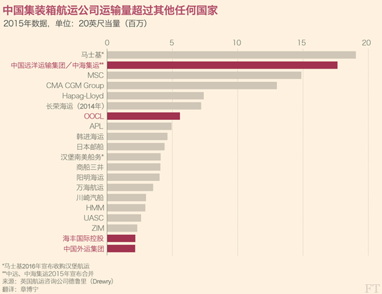 由于缺乏数据披露,很难核算出此类投资的总规模。但根据伦敦大学国王学院(King‘s College, London)“刘氏中国研究院”(Lau China Institute)的萨姆?比特森(Sam Beatson)和吉姆?科克(Jim Coke)与英国《金融时报》合作进行的研究,自2010年以来,中国内地和香港的企业已完成或宣布的交易包括至少40个港口项目,总价值约456亿美元。还有多笔交易——从马来西亚的加厘岛(Carey Island)到朝鲜的清津(Chongjin)——虽然有过报道,但报道未披露任何财务细节。