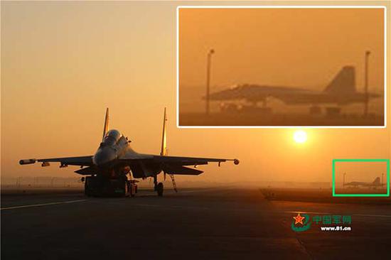 军网上传的原图中,这架飞机只是远处一个模糊的背景,放大后也无法看出细节