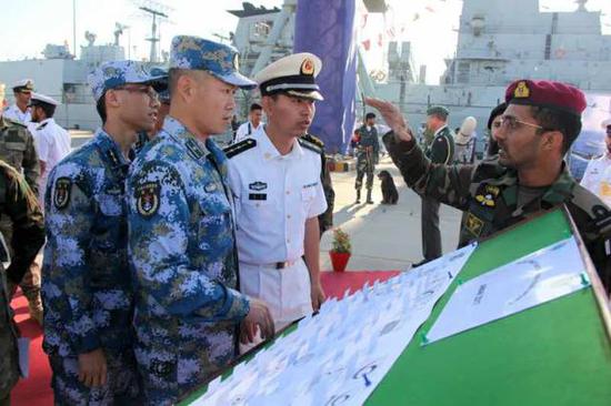 开幕式结束后,中国海军第二十四批护航编队指挥员拜会了巴基斯坦海军官员。我参演编队有关人员与各参演国海军一起参加了联演协调、飞行准备、通信介绍等会议,按照先总体方案对接,再具体兵力协调的思路,展开针对性磋商。分别对演习的组织指挥、通信协同、兵力运用、职责分工等进行细化,并按相关规定进行了规范。(韩丰军 张腾飞 王长松 朱宇晗 王建佳 刘少伟 周远志)