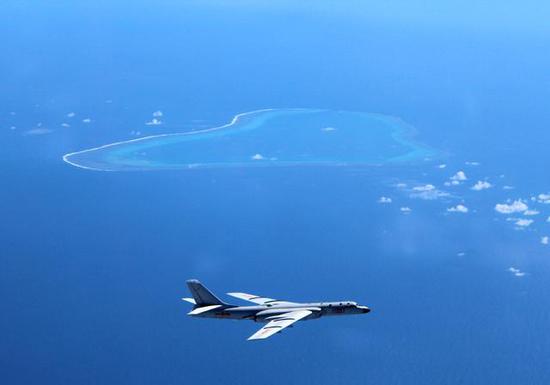 刘锐:看到了泻湖一样的环形岛礁,我们的黄岩岛,非常兴奋,我当时突然有一个想法,既然我们来了,我为什么不能用我的相机,让我们的轰-6K,让我们的黄岩岛,在一个画面出现。