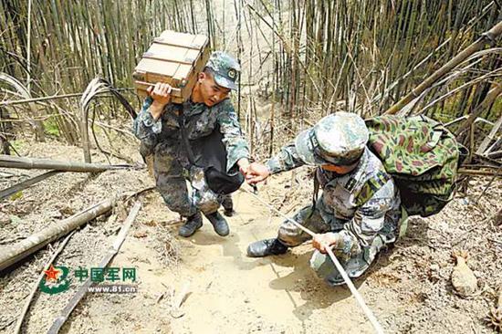 中越边境扫雷作业,是在亚热带山岳丛林地带进行。