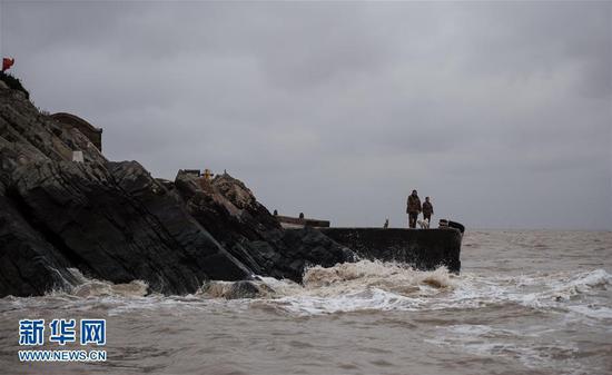 2017年2月21日,王继才夫妇站在江苏开山岛的码头。