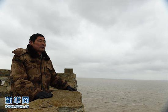2017年2月21日,王继才在江苏开山岛上眺望远方。