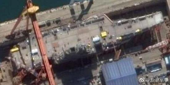 中国首艘国产航母最新卫星照片,可以看到船厂已经开始清理甲板