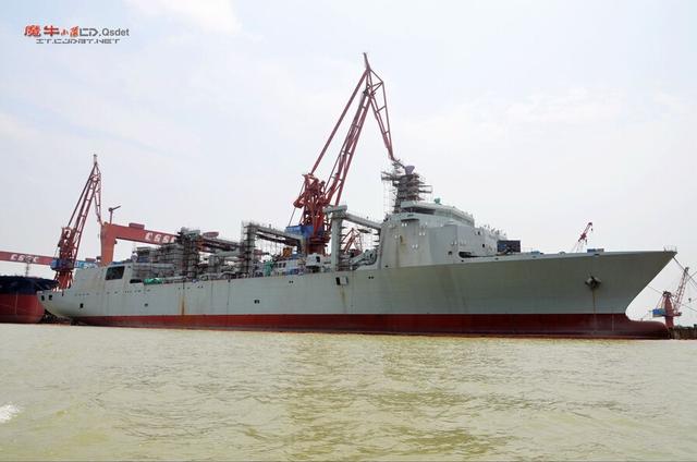 被誉为“航母奶妈”的901型综合补给舰首舰的建造也已进入海试阶段,或将于今年年内服役,901型补给舰排水量约5万吨,目前二号舰也已开建