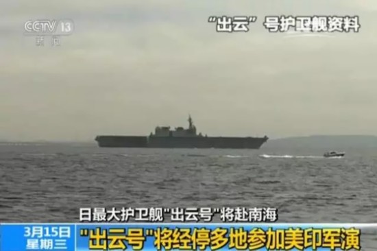 目前日本海上自卫队拒绝对“出云”号将开赴南海的消息进行证实,但据路透社报道,“出云”号护卫舰将于5月起航,经停新加坡、印尼、菲律宾和斯里兰卡后,于7月在印度洋与美国和印度海军举行“马拉巴尔”联合军事演习,最终于8月返回日本。