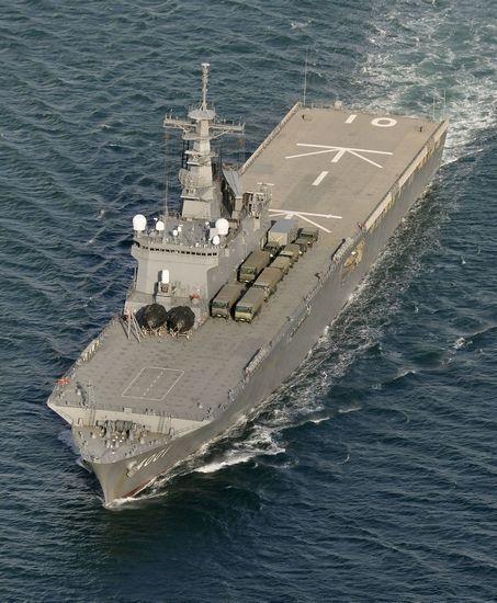 到上世纪80年代,日本首次把直通式船坞登陆舰列入建造日程,这就是日本的一代近似准航母大隅级输送舰。虽然它的排水量只有一万吨出头,但这可以认为是日本航母建造风向的转变,之后日本又发展了更大规模的16DDH直升机母舰,日本称之为航空驱逐舰,即日向级直升机母舰,该舰排水量接近了两万吨,从航母的特征看,日向级几乎具有一切航母的特征,甚至于只要斜角甲板,换滑跃舰首,或者换装弹射器,即可成为一艘货真价实的航空母舰,当然它的固定翼舰载机的起飞重量还要受一定限制,但称之为轻型航母毫不为过。