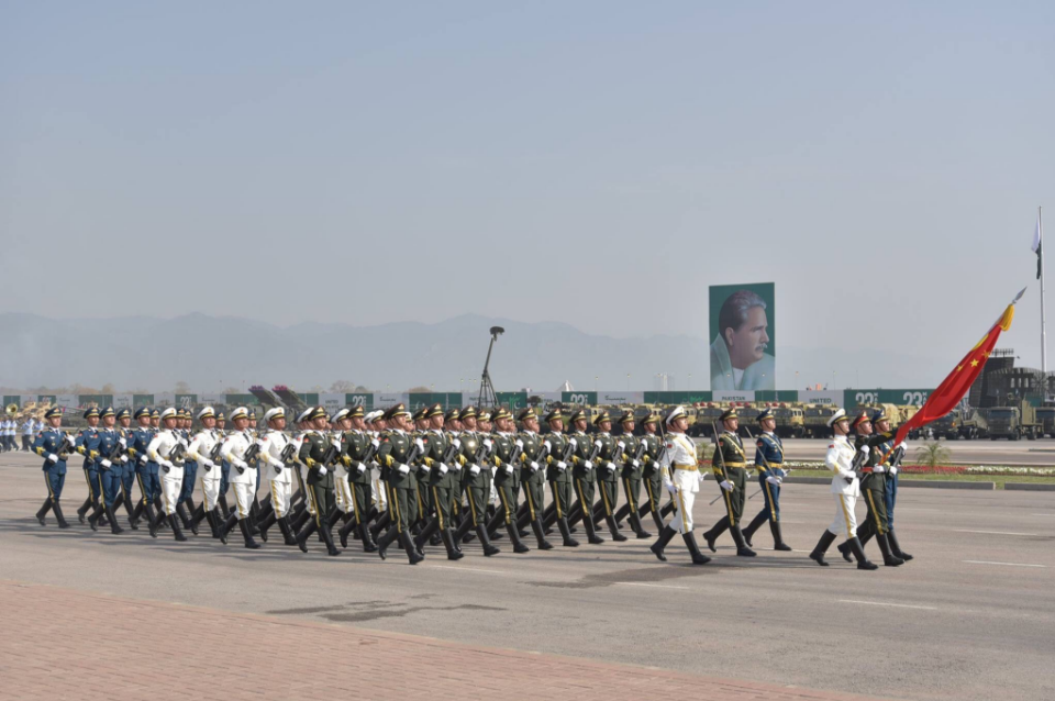 为准备3月23日的国庆阅兵仪式,巴基斯坦于19日在首都伊斯兰堡举行首次全装彩排。此次彩排上亮相的“中国味”不仅仅是三军仪仗队,还有各式各样中国造的武器装备。仅仅这一张照片上的就有FM-90防空导弹(红旗-7A出口型),A-100自行火箭炮