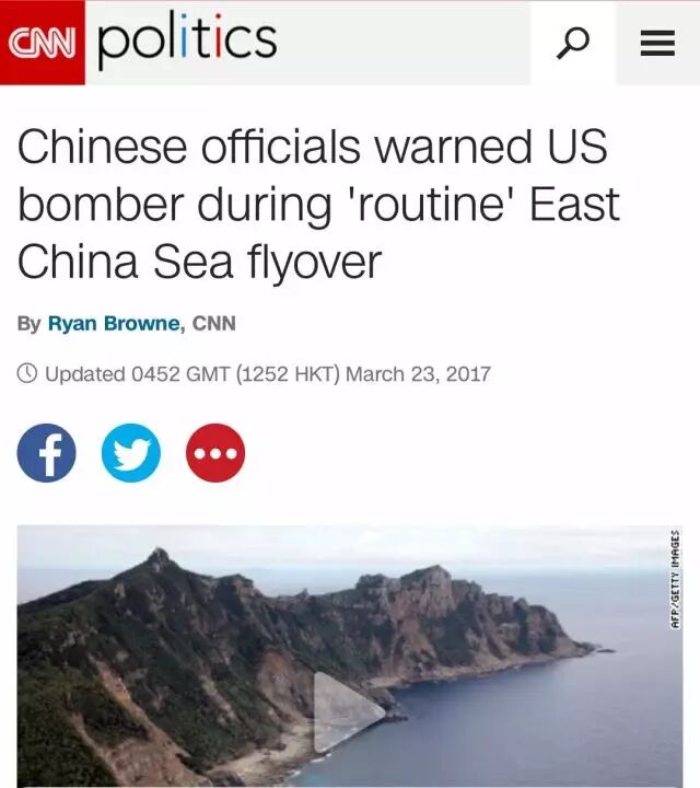 据CNN今天中午的消息,美国一架B-1B轰炸机在中国东海进入中国防空识别区,遭到中方警告驱离。