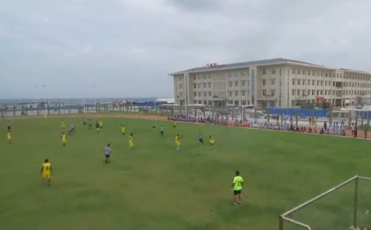 已经在年前服务官兵及工作人员的永暑礁足球场,请注意周围的绿化树林。老兵终于不用担心祖国的绿叶被海风吹落了。