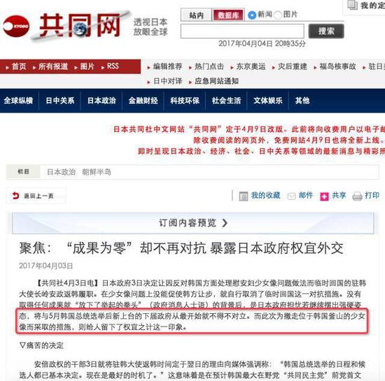 日本共同社称,在少女像问题上没能促使韩方让步,日本就自行取消了临时回国这一对抗措施。日本政府担忧若继续摆出强硬姿态,将与5月韩国总统选举后新上台的下届政府从最开始就不得不对立。而此次为撤走位于韩国釜山的少女像而采取的措施,则给人留下了权宜之计这一印象。