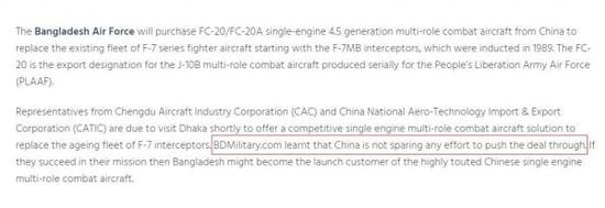 据查询,关于孟加拉空军希望购买歼-10B的孟加拉非官方军事消息网站BDmilitary.com,其性质与中国“铁血军事”之类的民间网站相同。查询该网站上关于孟加拉国购买战斗机的报道,还可以看到孟加拉空军想要购买俄罗斯伊尔库特公司苏-30SM的报道。可见这则新闻的可信度是非常可疑的。