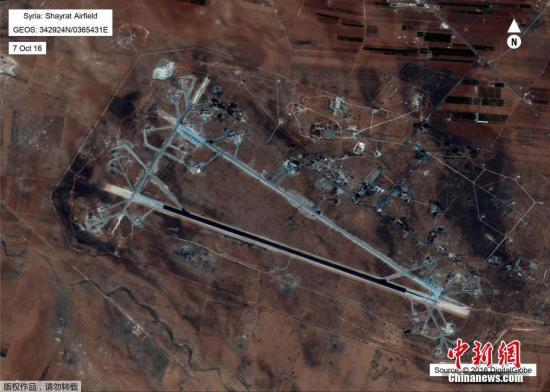 美国国防部公布的叙利亚霍姆斯Shayrat空军基地的卫星图像。