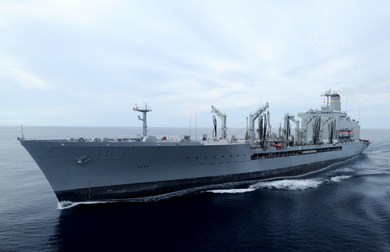 跟着第1航母打击大队受罪的“蒂皮卡格”号舰队补给油船(TAO199),没有她,大队里的CG57“张伯伦湖”号、DDG108“迈耶”号和DDG112“墨菲”号都得趴窝