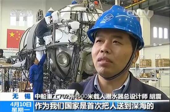 中船重工702所4500米载人潜水器总设计师 胡震:因为蛟龙号,在我们国家是首次把人送到深海的这么一个装备,那么它确实从本身技术上来讲,带有很多我们技术的探索、研发,那么4500米运用了更多的,我们国内已经成熟的技术,就是把更多的成熟技术集成在我们4500米载人潜水器上了。