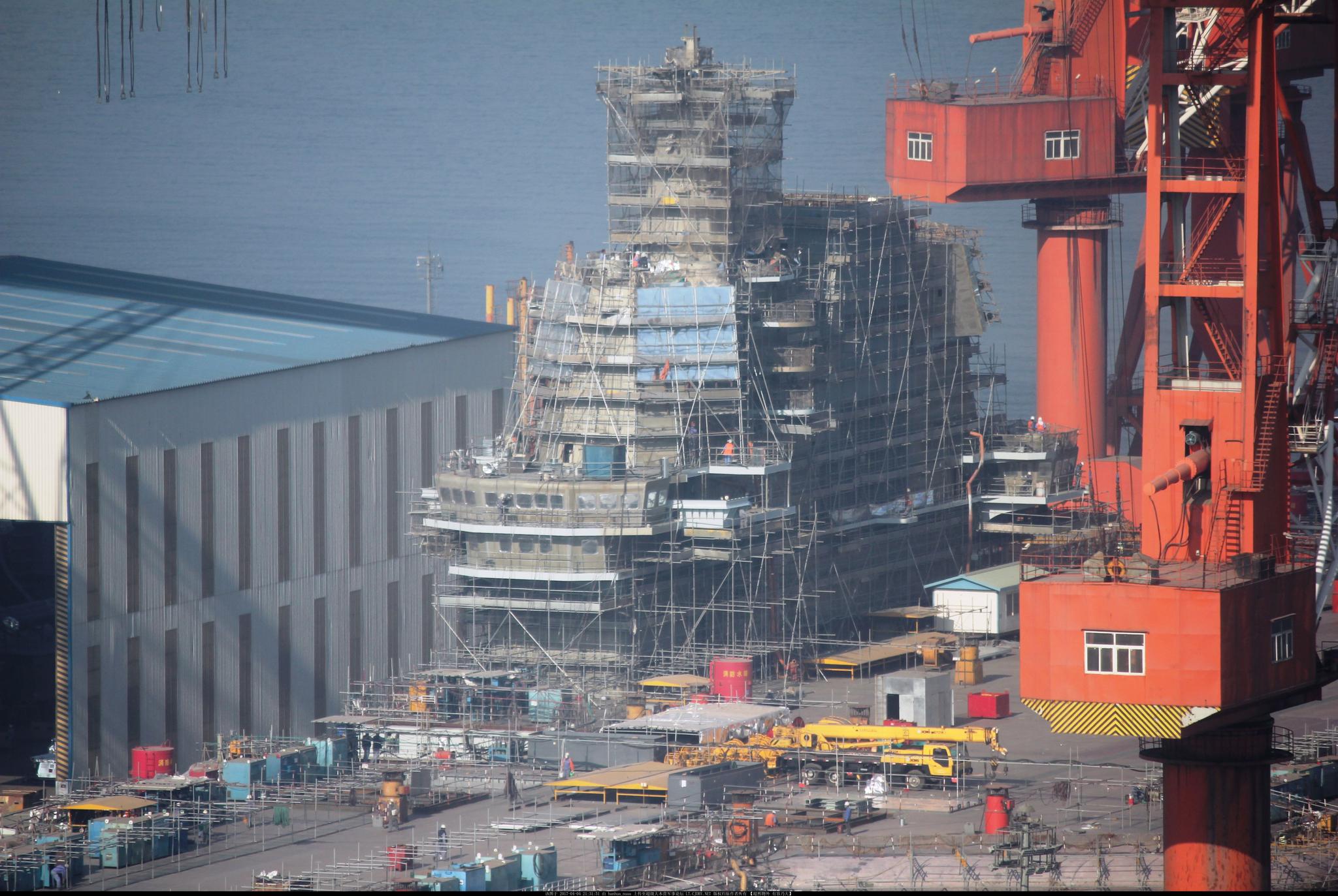 媒体报道称,从3月以来网络上的照片显示首艘国产航母已涂装红色底漆,舰岛上已开始安装玻璃及相控阵雷达等设备。最近曝光的照片更显示已开始清理甲板,可能于近期下水。