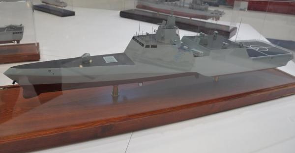 中国海军新一代护卫舰设计也在进行中,据消息,该舰将采用全燃气轮机动力,航速比现有054A有较大幅度提高,甚至有传闻称中国海军提出了航速赶上LCS的设想。近期在海外展示的两种可能与054B有关的模型也显示出了上述特征,由于设计之初就是作为正规护卫舰设计,因此其火力至少不比改进后的LCS更弱,甚至可能安装中国海军的大型通用垂发系统,从而具备对陆、对海、对空、反潜的综合交战能力……某种意义上,中美两国未来护卫舰有些“殊途同归”的味道,都是高航速、大吨位的多用途护卫舰,只不过,由于LCS原始设计的一些不合理考虑,其继续提高的潜力恐怕不占优势