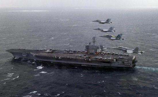值得一提的是,卡尔·文森号航母,排水量将近10万吨,是美国海军“尼米兹”级航母中的第3艘舰,也是世界范围内重型航母中的佼佼者。它可以搭载F-18超级大黄蜂战机, E-2“鹰眼”预警机, MH-60“海鹰”直升机,C-2“灰狗“运输机等飞机70余架。