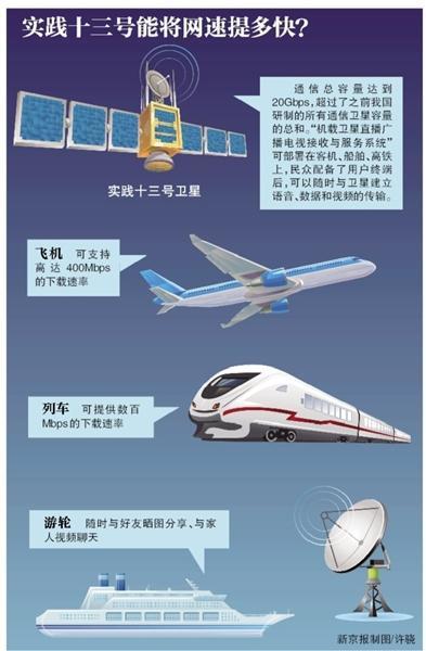 新京报讯(记者李玉坤)昨日,我国首颗高通量通信卫星实践十三号成功发射。实践十三号通信总容量超过20Gbps,超过了我国之前研制的所有通信卫星容量的总和。