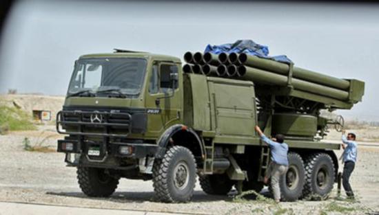 使用奔驰2631卡车底盘的伊朗“黎明”3火箭炮,其技术来源正是朝鲜出口的240mm火箭炮。