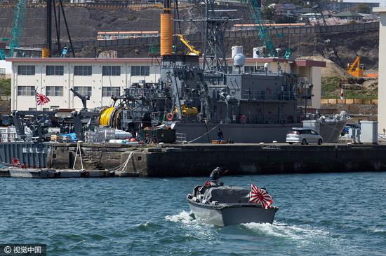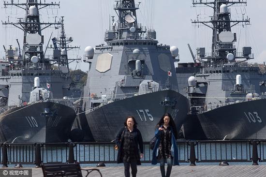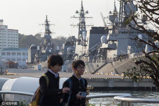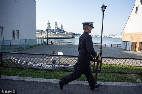 当地时间2017年4月13日,美国“里根号”核动力航母战斗群停靠在日本横须贺港。