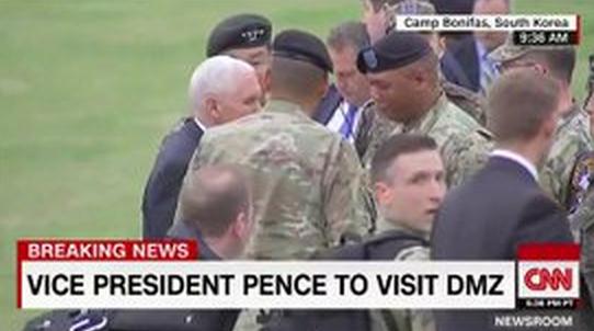 法新社4月17日消息,美国副总统彭斯已经抵达三八线附近一军营,并对其进行访问。