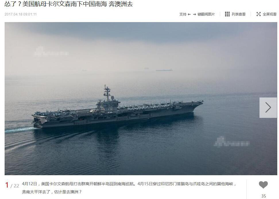 军事:美军称卡尔文森号航母从来没有北上朝鲜半岛(5)