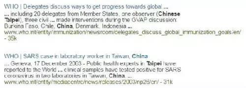 ▲在世界卫生组织官网中,涉及台湾的表述使用的是“中华台北”和“中国台北”。