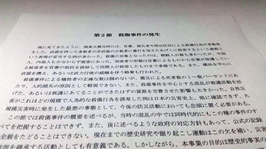 海外网4月19日电据日本《朝日新闻》报道,日本内阁府从其官方网站主页删除了灾害教训报告书。灾害教训报告书是由政府中央防灾会议的专门调查会总结整理的,其主要内容是为了将江户时代以来的灾害教训传给后人。内容的其中一部分记载了关东大地震时朝鲜人和中国人被屠杀的内容。负责人表示,“因为对于内容的批判声不绝于耳,而且登载已有7年,所以决定不再登了。”