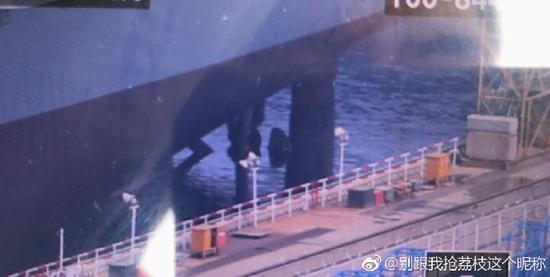 波光粼粼的舰体,注水工作进展顺利(感谢微博网友@用影像纪录生活)