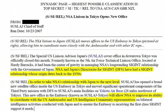 军事:斯诺登披露称美国日本秘密合作60多年 监控中国(2)