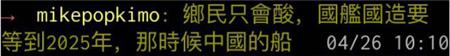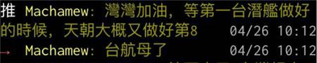 因此,台湾网友又一次看不下去了:等台湾造好第一艘潜舰的时候,大陆已经造了好几艘航母了……