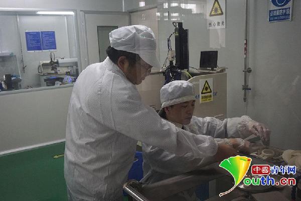 刘劲松指导徒弟做实验。中国青年网记者 杨月 摄